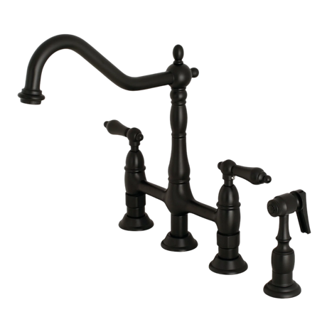 Heritage Two-Handle 4-Hole Deck Mount Bridge Kitchen Faucet with Brass Side Sprayer, Matte Black Sale price $37809 Regular price $46995Unit price /Unavailable