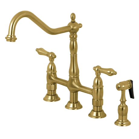 Heritage Two-Handle 4-Hole Deck Mount Bridge Kitchen Faucet with Brass Side Sprayer, Brushed Brass Sale price $39300 Regular price $49995Unit price /UnavailableIn stock (15 units)