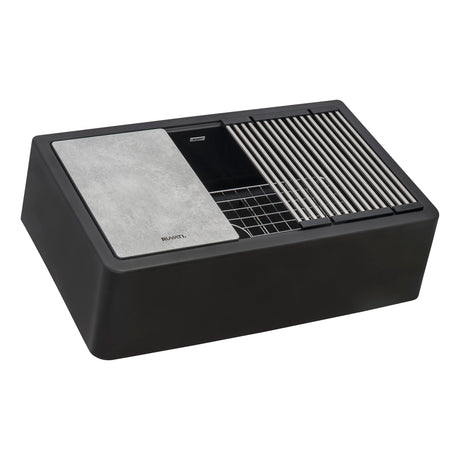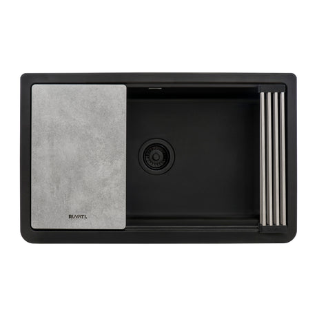 Ruvati 33-inch Matte Black Granite Farmhouse Workstation Apron-front Composite Kitchen Sink