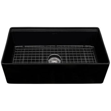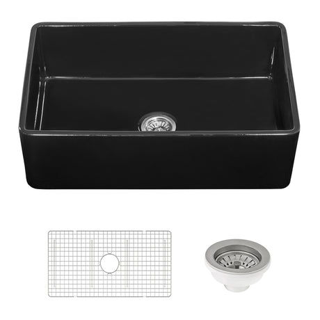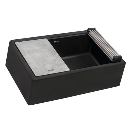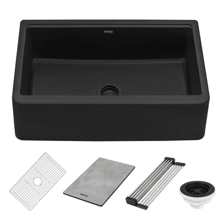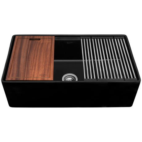 Ruvati 33 inch Fireclay Workstation Black Farmhouse Kitchen Sink Apron Front Single Bowl