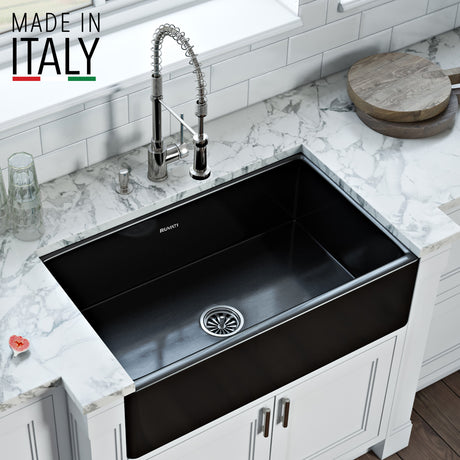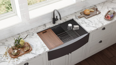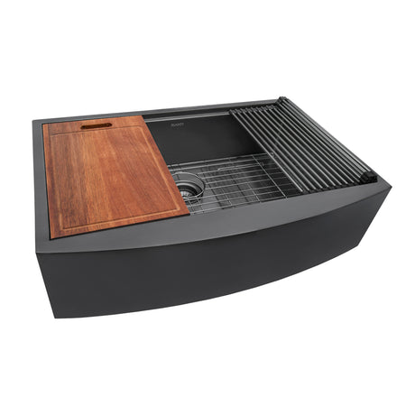 Ruvati 36-inch Gunmetal Black Workstation Apron-Front Stainless Steel Kitchen Sink