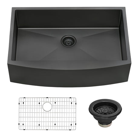 Farmhouse Apron-Front Stainless Steel 36 in. Single Bowl Kitchen Sink in Gunmetal Black Matte