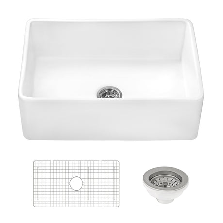 Ruvati 33 x 20 inch Fireclay Reversible Farmhouse Apron-Front Kitchen Sink Single Bowl White