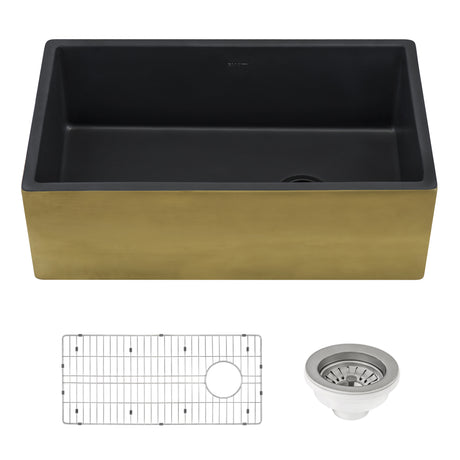 - SaleRuvati Ruvati 30-inch Matte Black and Brushed Gold Fireclay Modern Farmhouse Kitchen Sink Single Bowl Sale price $1,78830 Regular price $1,89900Unit price /UnavailableLow stock (4 units)