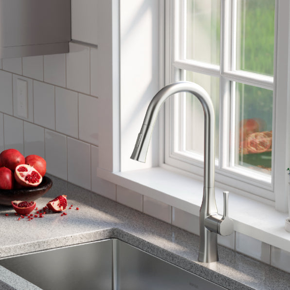 Upgrade your kitchen with the sleek and functional KKF140 Single-Hole Pull-Down Faucet. The pull-down sprayer provides versatility with a choice between a powerful spray for tackling tough cleaning tasks or a steady stream for regular kitchen activities. Crafted with high-quality materials, this faucet ensures durability and reliable performance. Choose from three stunning finishes - Chrome, Matte Black, and Stainless Steel - to complement your kitchen decor. Enjoy the perfect combination of style, functionality, and water efficiency with the KKF140 Single-Hole Pull-Down Faucet.