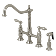 Heritage KS1278ALBS Two-Handle 4-Hole Deck Mount Bridge Kitchen Faucet with Brass Side Sprayer, Brushed Nickel