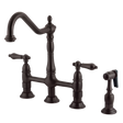 Heritage KS1275ALBS Two-Handle 4-Hole Deck Mount Bridge Kitchen Faucet with Brass Side Sprayer, Oil Rubbed Bronze