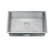 The KH-3018-10-S-R0 is a zero radius undermount single bowl kitchen sink that fits perfectly within a 33" cabinet. Handmade from 18-gauge 304 stainless steel, the KH-3018-10-S-R0 features the bold look of 90-degree corners and a deep basin for an elegant and professional design that offers the maximum usable sink space. A brushed satin finish protects the beauty of the sink. The dimensions for the KH-3018-10-S-R0 are 30" x 18" x 10-3/8" with a rear drain that measures 3 1/2". Every Allora USA sink features a coating of insulating paint and sound dampening pad to reduce noise. Pictures not to scale. Accessories not included.