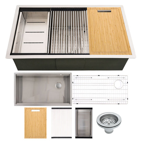 Handcrafted Undermount Workstation Sink 33" 16-Gauge Stainless Steel